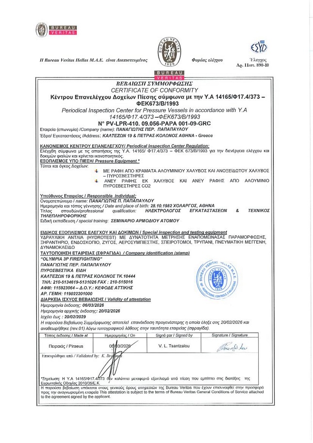 ΒΕΒΑΙΩΣΗ ΣΥΜΜΟΡΦΩΣΗΣ ΚΕΝΤΡΟΥ ΕΠΑΝΕΛΕΓΧΟΥ ΔΟΧΕΙΩΝ ΠΙΕΣΗΣ